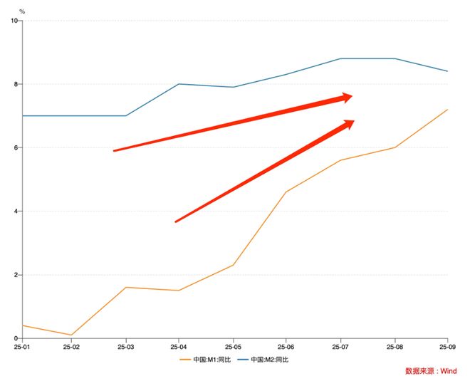 市场分析认为,近几个月M1增速回升态势明显,除了去年同期低基数影响外,也与企业和居民定期存款活化有关。今年以来M1-M2剪刀差明显收敛,反映出企业生产经营活跃度提升、个人投资消费需求回暖等积极信号。