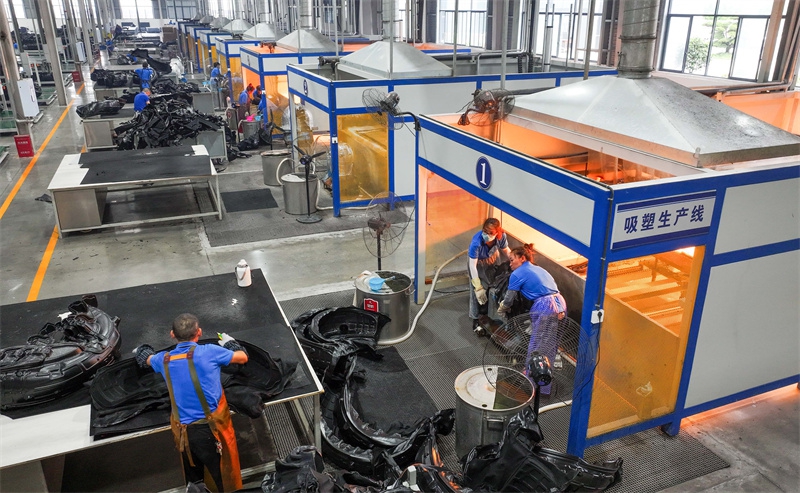 “目前,我们二期项目已经投入生产,相比之前生产效率提升了50%左右。现在年产吸塑轮罩800万件,模压成型件500万件,年生产总值可达3亿元。”重庆博邦汽车部件有限公司副总经理胡永红介绍道,通过不断优化生产工艺,公司研发的气味更低、重量更轻、性能更优的环保隔音材料获得了吉利汽车、长安汽车、长城汽车、比亚迪、赛力斯等众多品牌汽车的认可,双方签订了汽车配件长期供应协议。