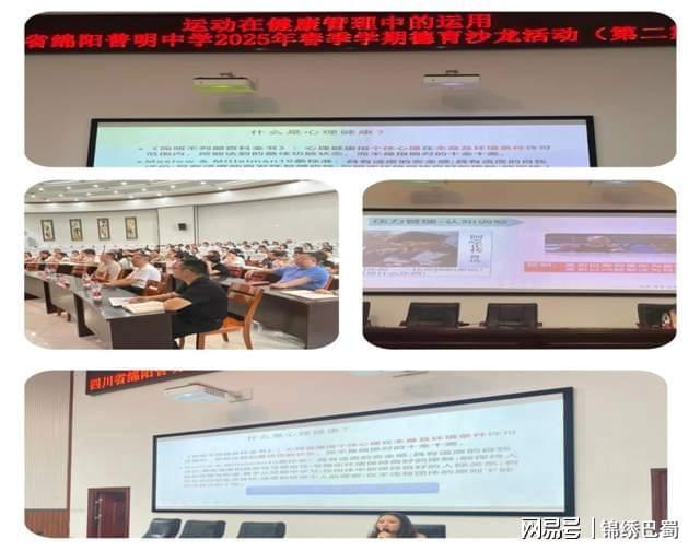 (八) 德育沙龙,专业提升政教处每月定期开展德育沙龙活动,5月心理健康周专门邀请绵阳市第三人民医院副主任医师胡一君老师围绕压力管理与情绪调节展开深入讲解,胡老师阐述了心理健康与压力的紧密联系并为大家提供了切实可行的方法,这些方法为老师们在日常生活和教育教学中应对压力舒缓压力提供了有效指导。各年级分管领导、班主任、心理教师、生活老师共150余人参加了此次专题培训,教师解决学生心理健康问题的能力得到有效提升。
