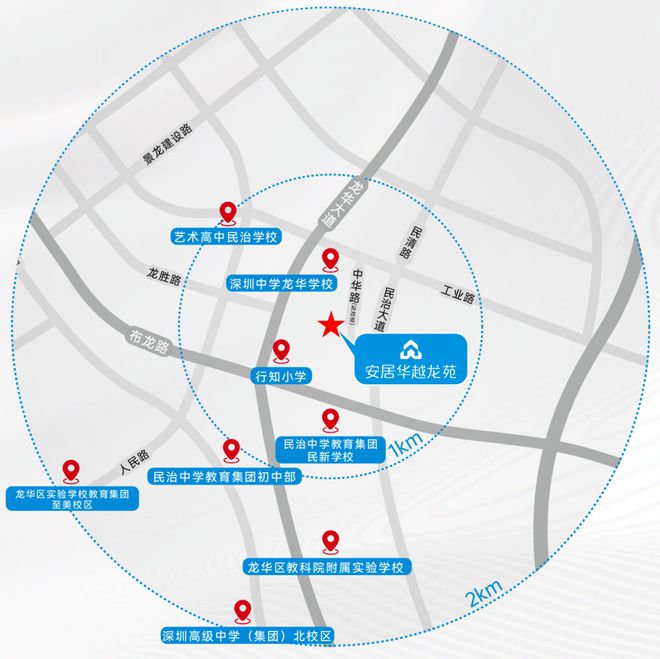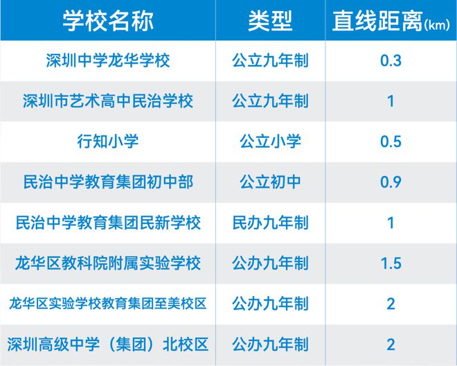 项目配建幼儿园,家门口即享启蒙教育,省心接送无忧。步行约300米直达深圳中学龙华学校(2024年启用,九年一贯制公办校),依托深中名师团队,约3.7万㎡校区与约3360个学位,硬件软件双优配置。
